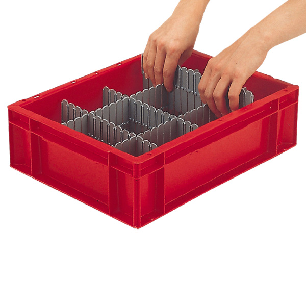 Divider strips which snap to size and interlock for ease of assembly offering variable compartment sizes.