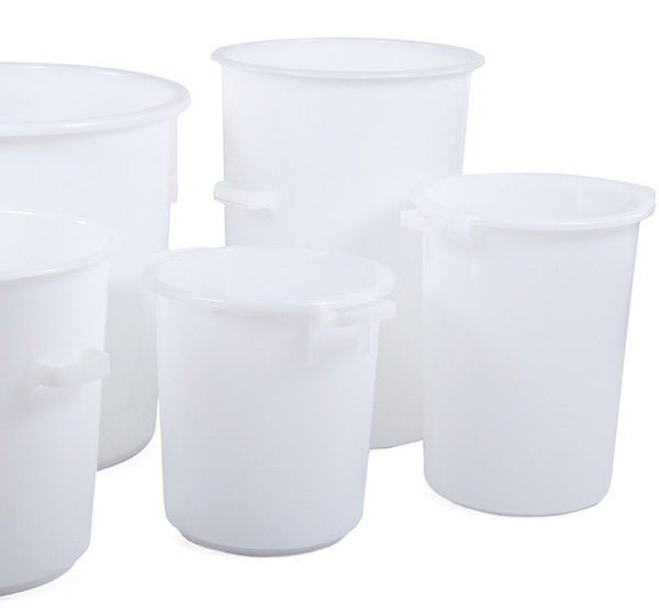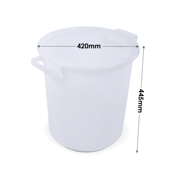 This tapered moulded bin is a tough and durable food handling container. Used for food handling and ingredient storage. Designed to nest and has a set of plastic handles.