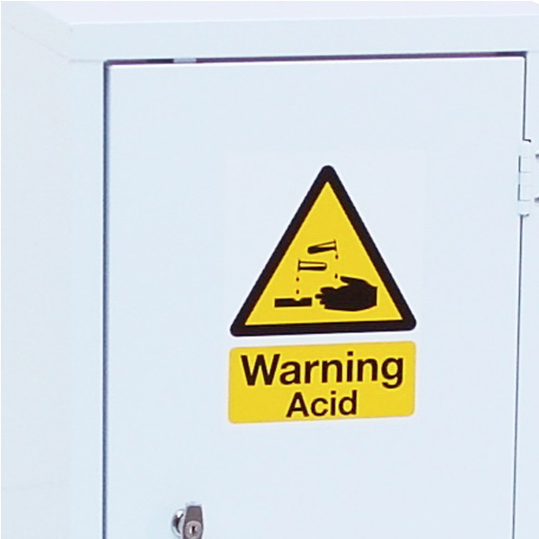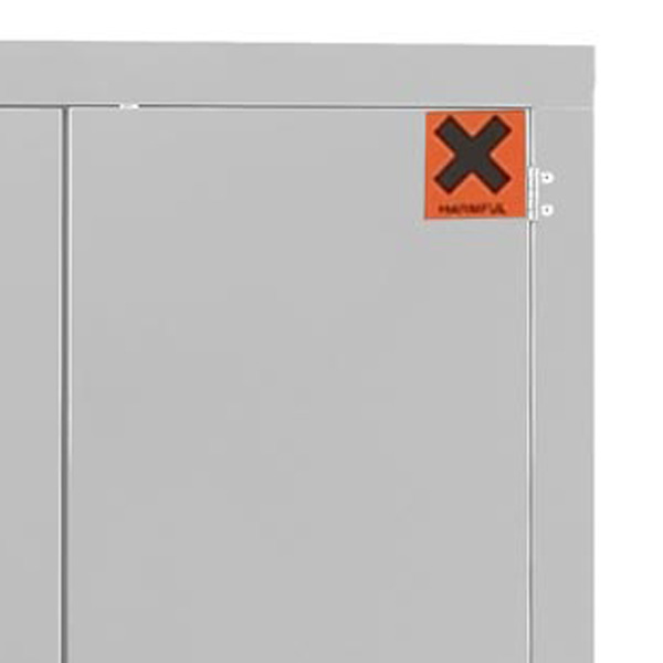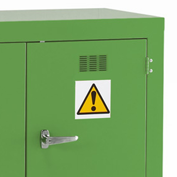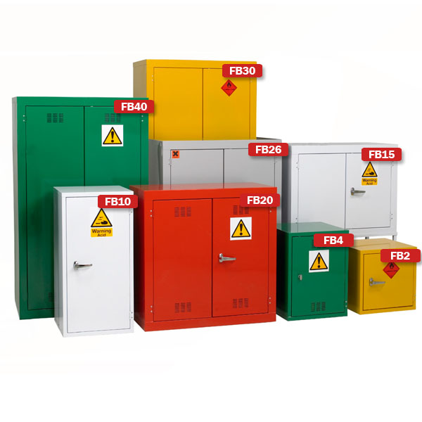 Strong welded steel storage cabinet for a range of hazardous materials. Cabinets available in different colours for different substances.
