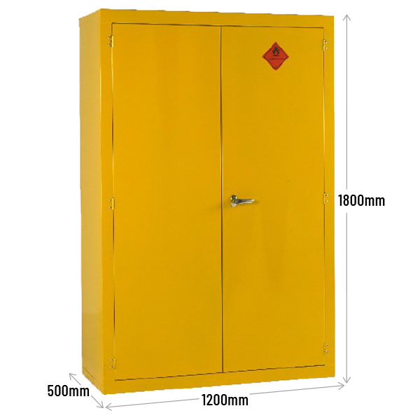Storage cabinets for Hazardous materials are manufactured from welded 20swg steel. All cabinets meet the requirements of the Highly Flammable and Liquified Petroleum Gases Regulations 1972 (section 5 Part D), The Health and Safety Executive Guide HS(G)51 1990 and the Factory Inspectorate Certificate of Approval No1 Parts 3 and 4.