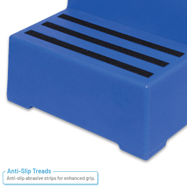 Heavy duty double safety step ideal for many industries including factories, warehouses, storerooms, schools and hospitals. Comes with abrasive strips to ensure a safe footing.