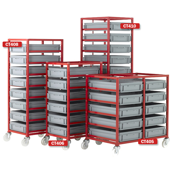 Tray rack suitable for storage and organisation in the workplace. An ideal solution for the storage of small items and parts.