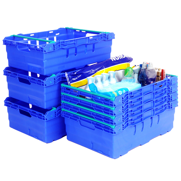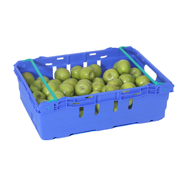 This Maxinest container has 2 bale arms to allow the crates to be stacked on top of each other when raised. When folded the crates can be nested to save space. Ideal for the food industry and supermarkets.